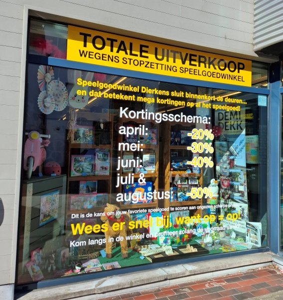 📣 Sinds 1 april is onze UITVERKOOP gestart, dit betekent KORTINGEN op al het speelgoed.